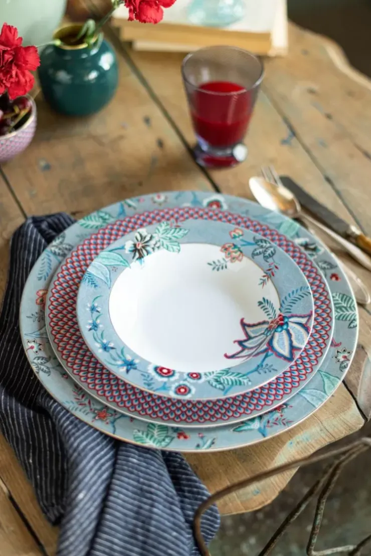 Vul Je Servies Aan Met Dit Flower Festival Diepe Bord Van 21.5 Cm. Ons Diepe Bord Heeft Een Blauwe Achtergrond En Is Versierd Met Het Elegante Flower Festival Dessin. Dit Rijke Bloemendessin Is Opgebouwd Uit Een Variatie Van Fantasierijke Rode En Roze Chintzbloemen Met Lichtblauwe En Groene Bladeren. De Speels Geplaatste Bloementakjes Met Uitgewerkte Gedecoreerde Bloemen En Bladeren Geven Dit Verfijnde Dessin Een Extra Rijke Beleving. Met Ons Flower Festival Porselein Zul Je Jouw Servieskast En Tafel Laten Stralen.