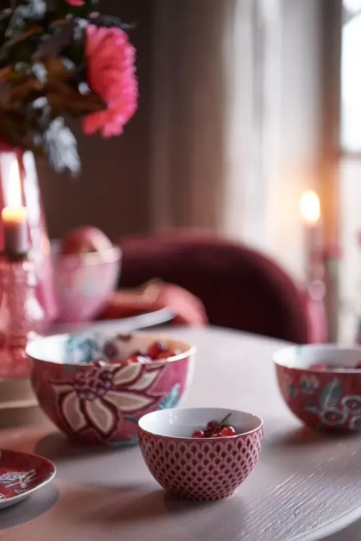 Pip Studio Flower Festival Kom Rood/Donker 9.5 Cm Roze