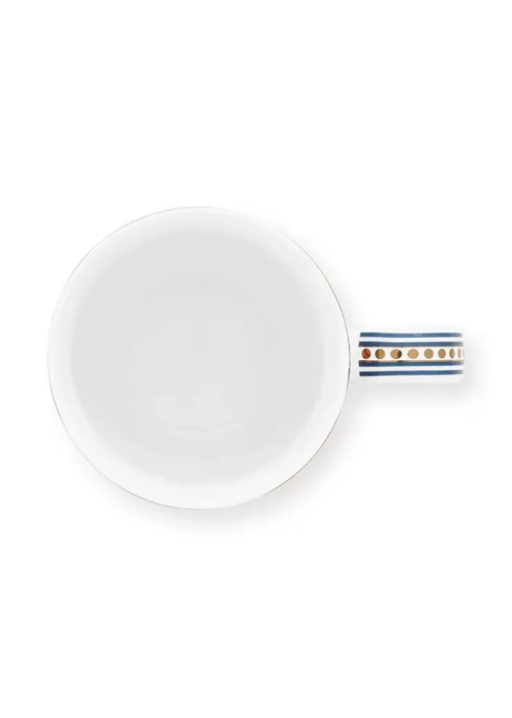 Vul Je Servies Aan Met Deze Kleine Flower Festival Mok. Deze Mok Heeft Een Blauwe Achtergrond En Is Versierd Met Het Elegante Flower Festival Dessin. Dit Rijke Bloemendessin Is Opgebouwd Uit Een Variatie Van Fantasierijke Rode En Roze Chintzbloemen Met Lichtblauwe En Groene Bladeren. De Speels Geplaatste Bloementakjes Met Uitgewerkte Gedecoreerde Bloemen En Bladeren Geven Dit Verfijnde Dessin Een Extra Rijke Beleving. Met Ons Flower Festival Porselein Zul Je Jouw Servieskast En Tafel Laten Stralen.