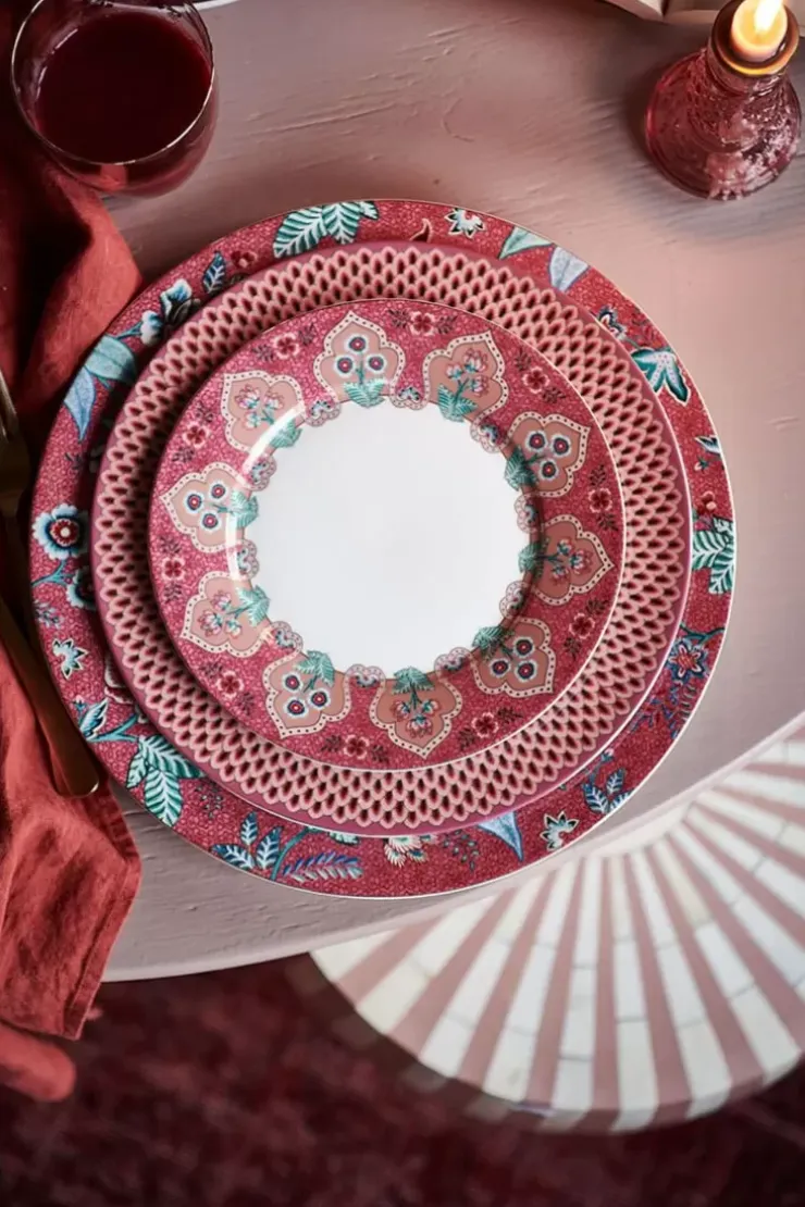 Pip Studio Flower Festival Ontbijtbord Donker 21 Cm Roze New