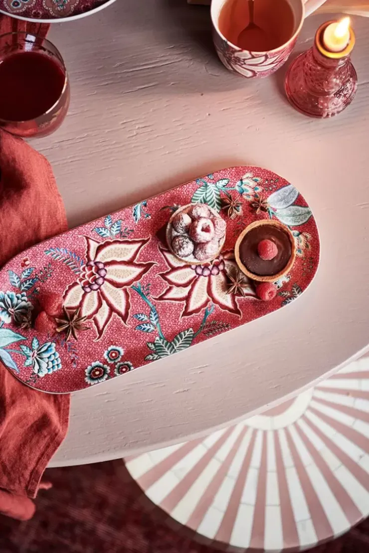 Pip Studio Flower Festival Rechthoekig Taartplateau Donker Roze Online