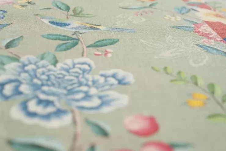 Wat Het Groene Good Evening Dessin Een Blikvanger Op Je Muur Maakt? Het Bloemen Dessin Good Evening Is Een Prachtig Groots Dessin Op Vinyl Met Kleurrijke Bloemen En Tropische Vogels. De Print Is Geinspireerd Op Traditionele Orientaalse Muurschilderingen. Door De Structuur Van Het Behang Lijkt Deze Haast Een Prachtige Stof Die Op De Wand Is Aangebracht. Het Good Evening Dessin Is Makkelijk Te Combineren Met Bijna Alle Andere Dessins Uit De Collectie, Waardoor Er Een Leuk Mix & Match Effect Ontstaat. Het Pip Studio Good Evening Behang Is Verkrijgbaar In Verschillende Kleuren Zoals Geel, Wit, Zand, Petrol, Licht Blauw, Rood En Groen En Creeert Een Vrolijke Sfeer In Je Huis.