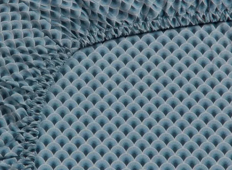 Dit Blauwe Hoeslaken Is Geprint Met Het Organische Suki Dessin. De Print Is Een All-Over Print Van Gestileerd Boogjes Met Verfijnde Details.