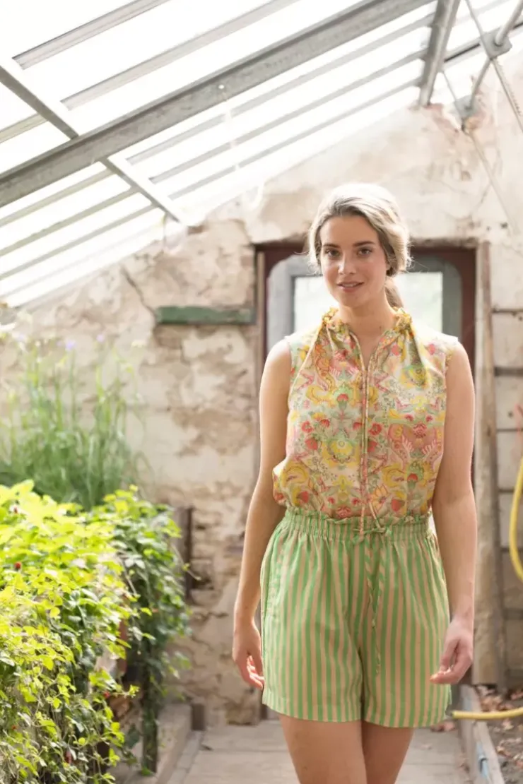 Ben Jij Klaar Voor Ultiem Comfort? Met Deze Korte Broek In Het Sumo Stripe Dessin Breng Jij Het Zonnetje Direct In Huis. Dit Dessin Sumo Stripe Dessin Geeft Een Speels Effect Waarin Verticale Strepen De Hoofdrol Spelen. Daarnaast Heeft De Broek Een Vrolijke Groene Kleur Welke Makkelijk Te Combineren Is Met De Overige Items Uit Deze Collectie. Naast Een Elastieke Taille, Heeft Het Broekje Ook Een Koord Voor Extra Comfort. Stijl Met Een Bijpassende Top En Creeer Een Prachtige Combinatie.