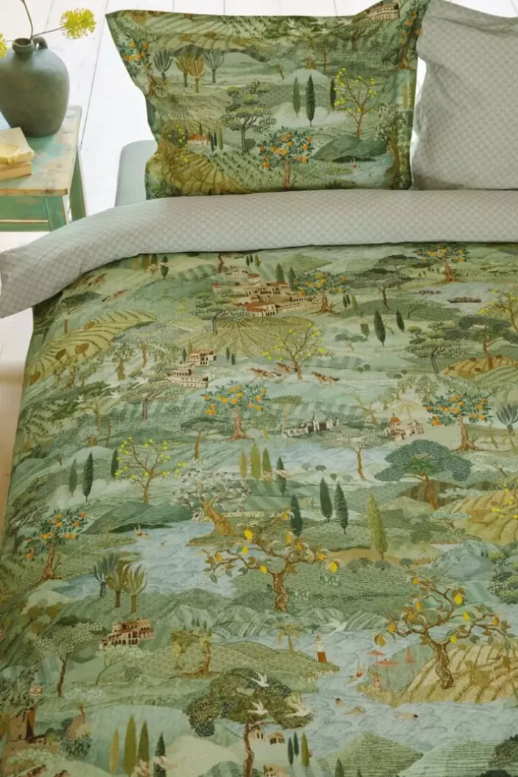 Met Haar Mooie Ciprissen Doet Het Kussensloop Toscana Je Denken Aan De Mooie Landschappen Van Toscane. De Achterkant Heeft Een Partroon Van Schelpjes. Dit Geeft Het Toscana Kussensloop Tezamen Met De Striksluiting Een Rijke Uitstraling. Het Kussensloop Kun Je Tweezijdig Gebruiken.