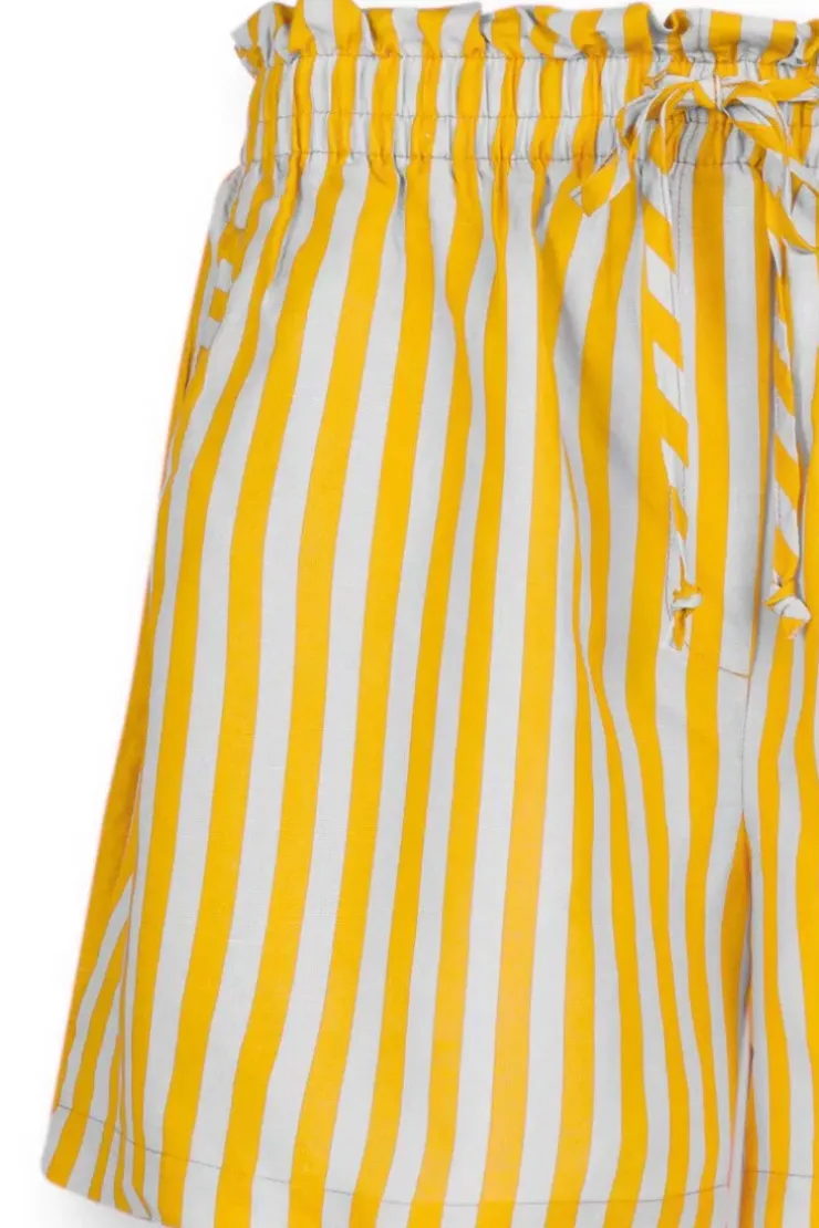 Ben Jij Klaar Voor Ultiem Comfort? Met Deze Korte Broek In Het Sumo Stripe Dessin Breng Jij Het Zonnetje Direct In Huis. Dit Dessin Sumo Stripe Dessin Geeft Een Speels Effect Waarin Verticale Strepen De Hoofdrol Spelen. Daarnaast Heeft De Broek Een Vrolijke Gele Kleur Welke Makkelijk Te Combineren Is Met De Overige Items Uit Deze Collectie. Naast Een Elastieke Taille, Heeft Het Broekje Ook Een Koord Voor Extra Comfort. Stijl Met Een Bijpassende Top En Creeer Een Prachtige Combinatie.