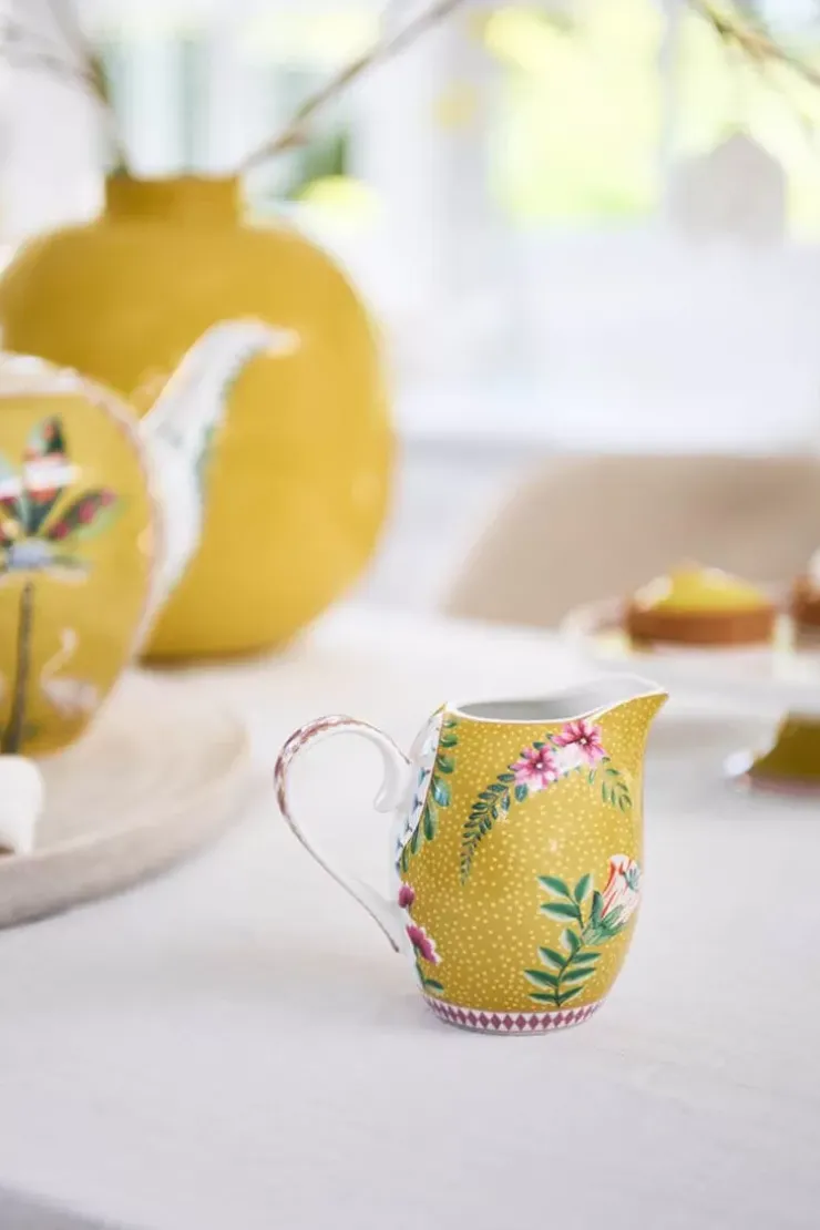 Deze Vrolijke Melkkan Is De Perfecte Aanvulling Voor De Koffie & Thee Liefhebbers. Schenk In Stijl Met De Yellow Melkkan, Versierd Met Het Vrolijke La Majorelle Dessin. Dit Dessin Bestaat Uit Kleine Gestilleerde Bloemtakken Met Verschillende Soorten Exotische Bloemen. De Vrolijke Roze Details Geven De Melk Kan Een Vrolijke Twist. Met Ons La Majorelle Porselein Zul Je Jouw Servieskast En Tafel Laten Stralen!