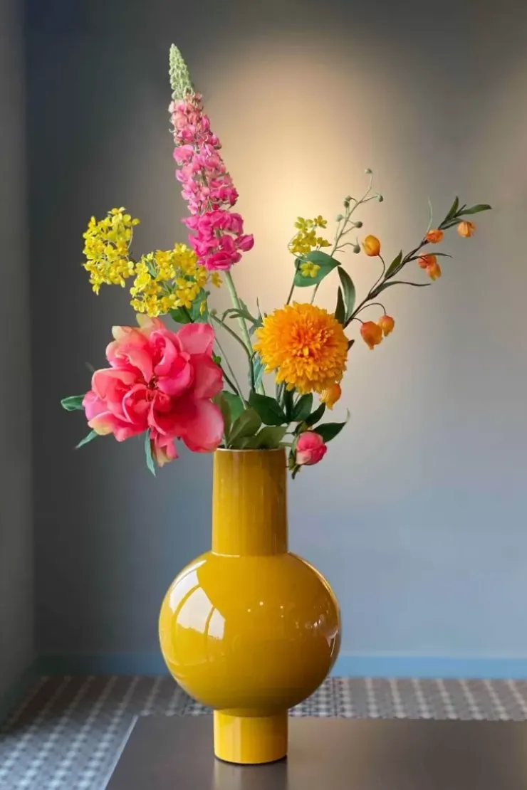 Met Deze Unieke Oker Gele Vaas Geef Je Jouw Interieur Meer Kleur. Geef Je Bloemen Het Podium Die Ze Verdienen Met Deze Vaas.