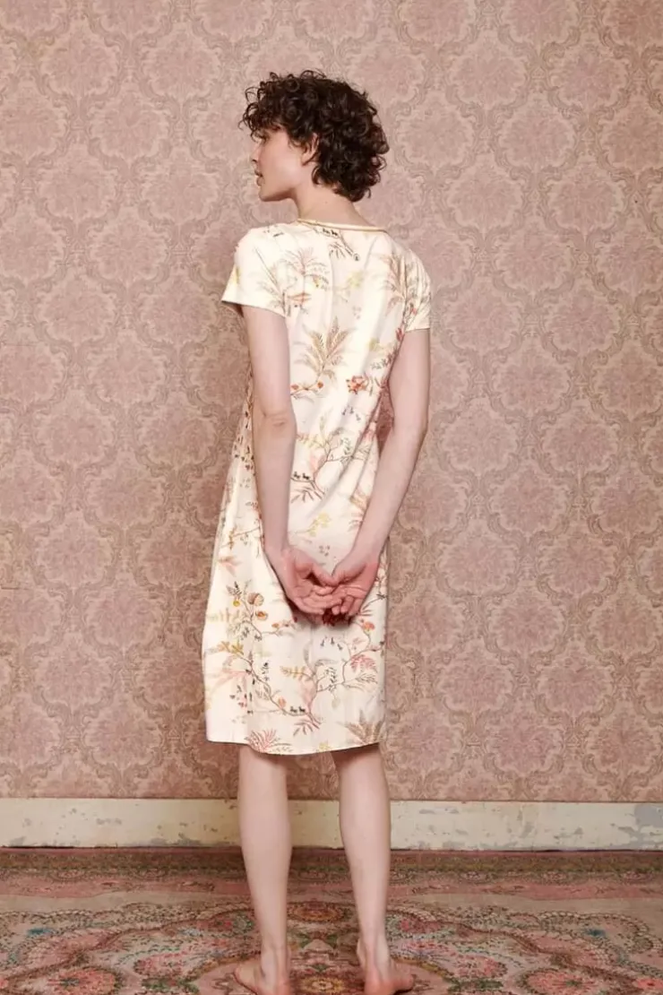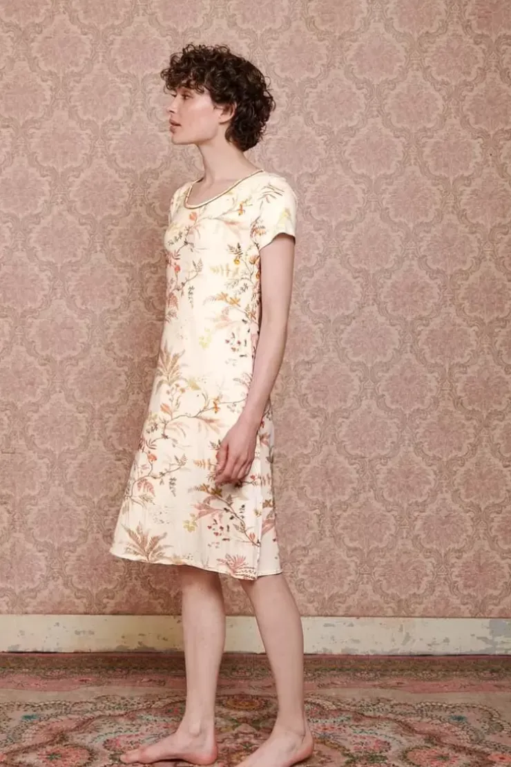 Dit Nachthemd In Het Wit Is Uitgevoerd Met Het Speelse Isola Dessin. Het Speelse Dessin Heeft Een Verfijnde Print Van Meerkleurige Takjes En Varens. De Kleuren Van Het Nachthemd Zijn Zacht Met Subtiele Kleuraccenten. Het Nachthemd Heeft Korte Mouwen.