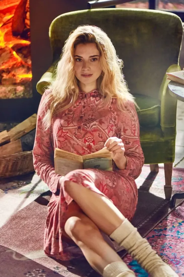 Dit Nachthemd In Het Terra Roze Is Uitgevoerd Met Het Vrolijke Kyoto Festival Dessin. Het Herhaalde Bloemdessin Is Opgebouwd Uit Een Variatie Van Fantasierijke Chintz Bloemen En Bladeren. Het Nachthemd Bevat Een Kraag Hals Met Bijpassende Knopen.