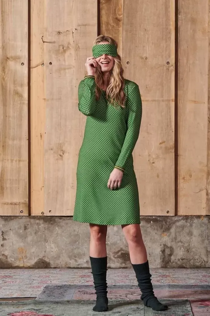Dit Nachthemd In Het Donkergroen Is Uitgevoerd Met Het Organische Suki Dessin. Het Herhaalde Dessin Is Opgebouwd Uit Gestileerde Boogjes. De Mouwen Zijn Afgewerkt Met Gedetailleerde Biesjes.