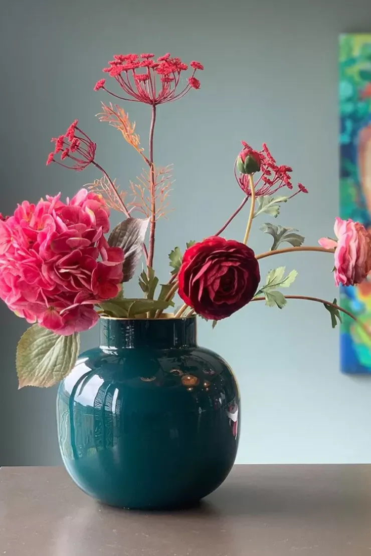 Deze Donkergroene Metalen Vaas Laat Elk Boeket Bloemen Er Fantastisch Uitzien. Ook Verkrijgbaar In Andere Kleuren En In Een Ovale Uitvoering. Combineer Deze Vaas Met Onze Pip Flowers Voor Een Mooi Effect.