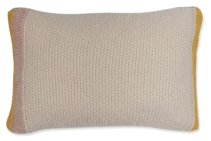 Bonnuit Is Een Grof Gebreid Sierkussen Met Een Warme Uitstraling En Voelt Heerlijk Zacht Aan. Het Sierkussen Heeft Een Witte Kleur Met Aan Een Kant Een Rand In Een Felle Gele Accentkleur. Het Bonnuit Kussen Is Verkrijgbaar In Meerdere Kleuren.